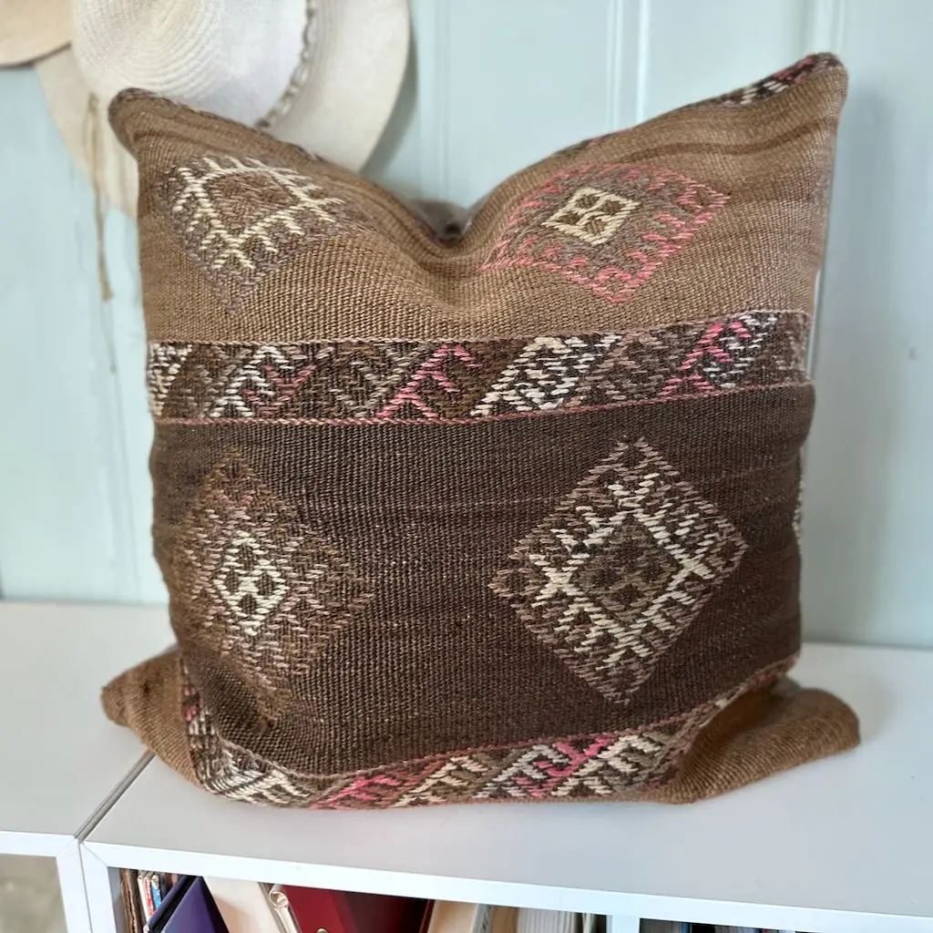 Vintage kelimpute 60 × 60 cm – rustikk brun/beige