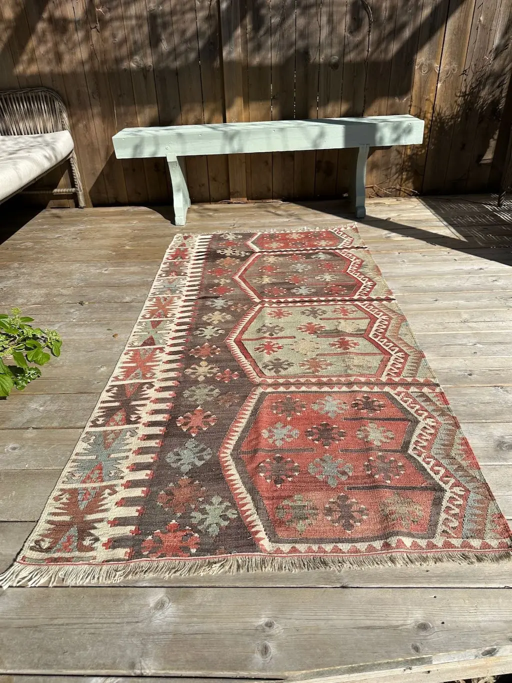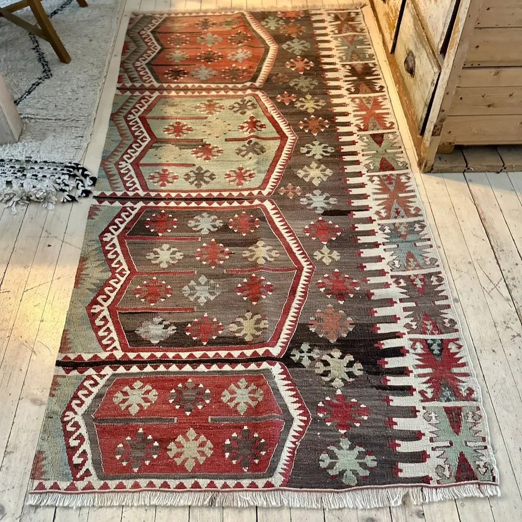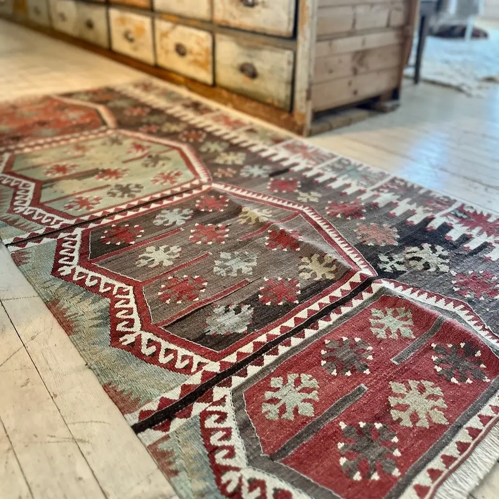 Her har du mulighet til å skaffe deg en kelimskatt av de sjeldne. Kelimen er vintage, men fullstendig uten bruksspor. Disse kelimene er det vanskelig å få tak i, så ikke nøl om du ønsker å kjøpe, det er «one-of-a-kind». Hver kelim har sin egen unike historie og sjarm, noe som gjør den til et verdifullt samleobjekt.