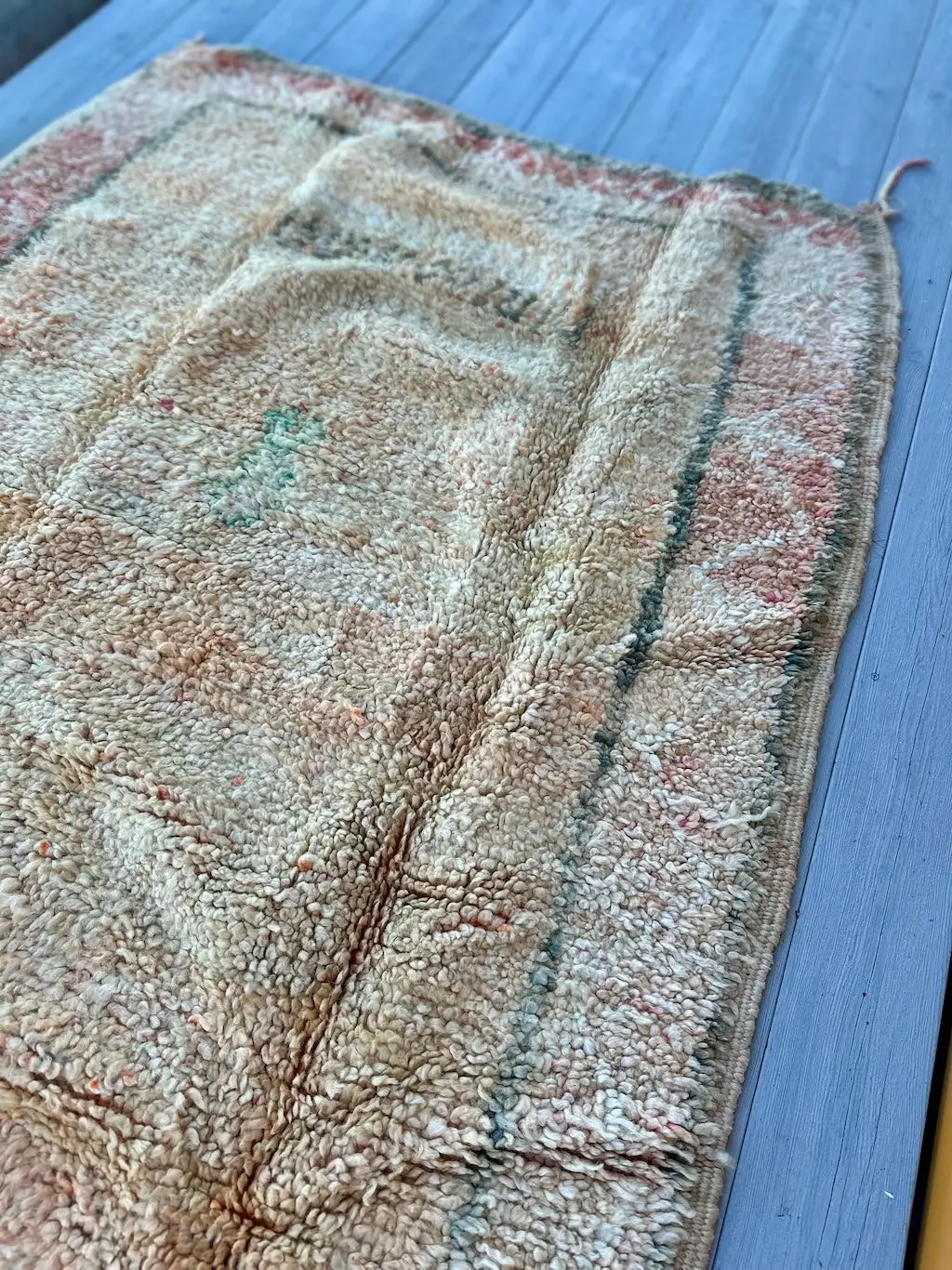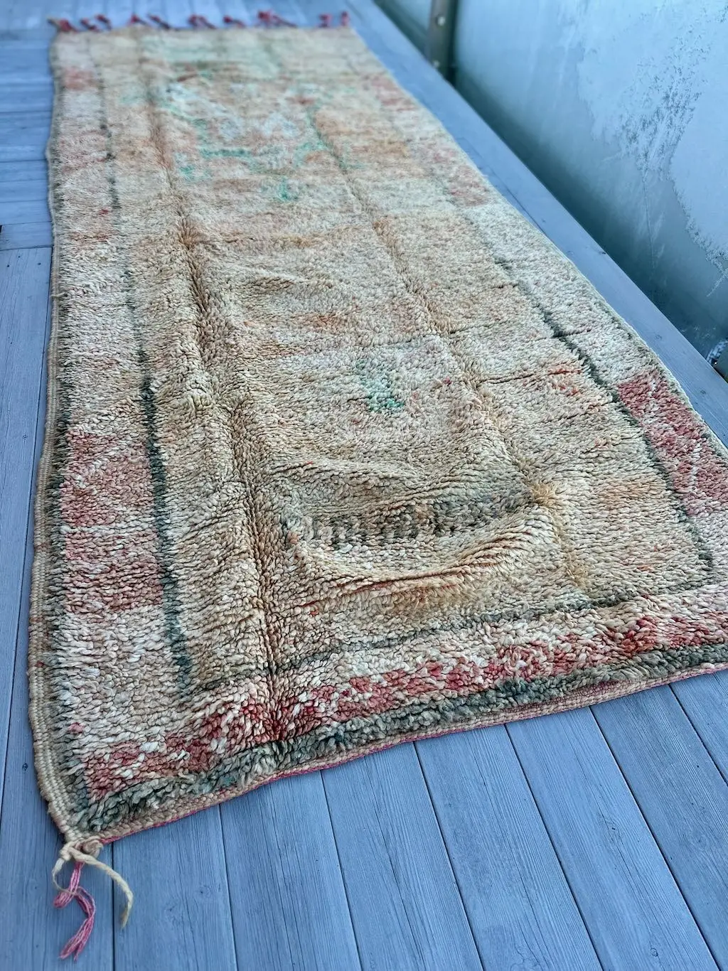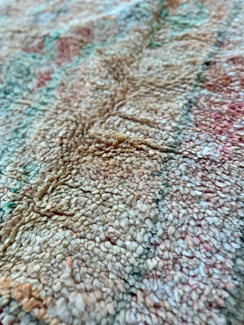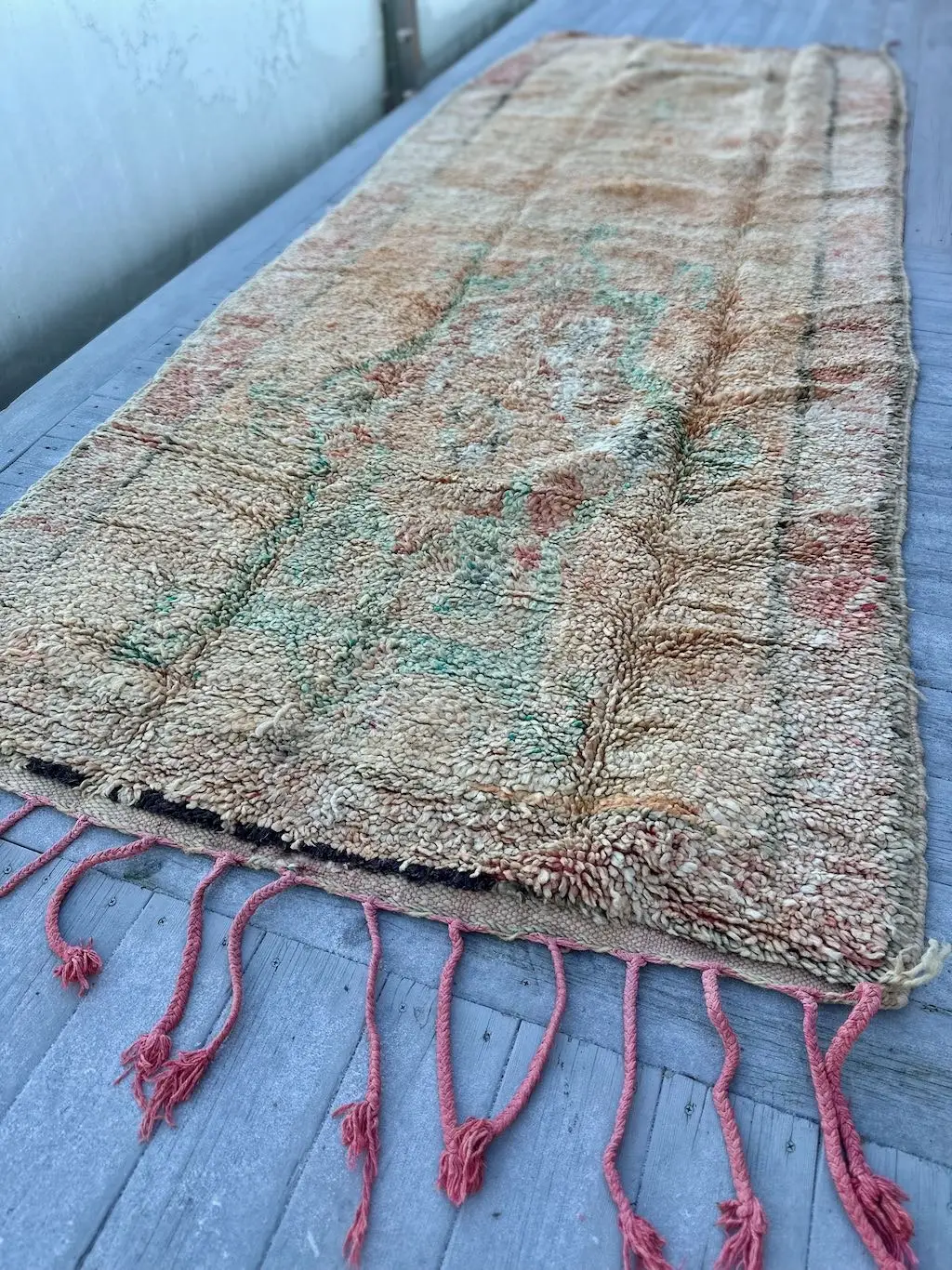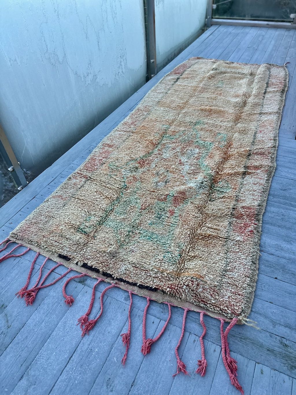 Ved å velge et vintage marokkansk teppe gir du hjemmet den spennende marokkanske «looken» som er så forlokkende og unik. Teppet er vevd i tykk ull, og på klassisk marokkansk vis avsluttes teppe med de flotte flettefrynsene som gir disse teppene sin karakteristiske stil.
