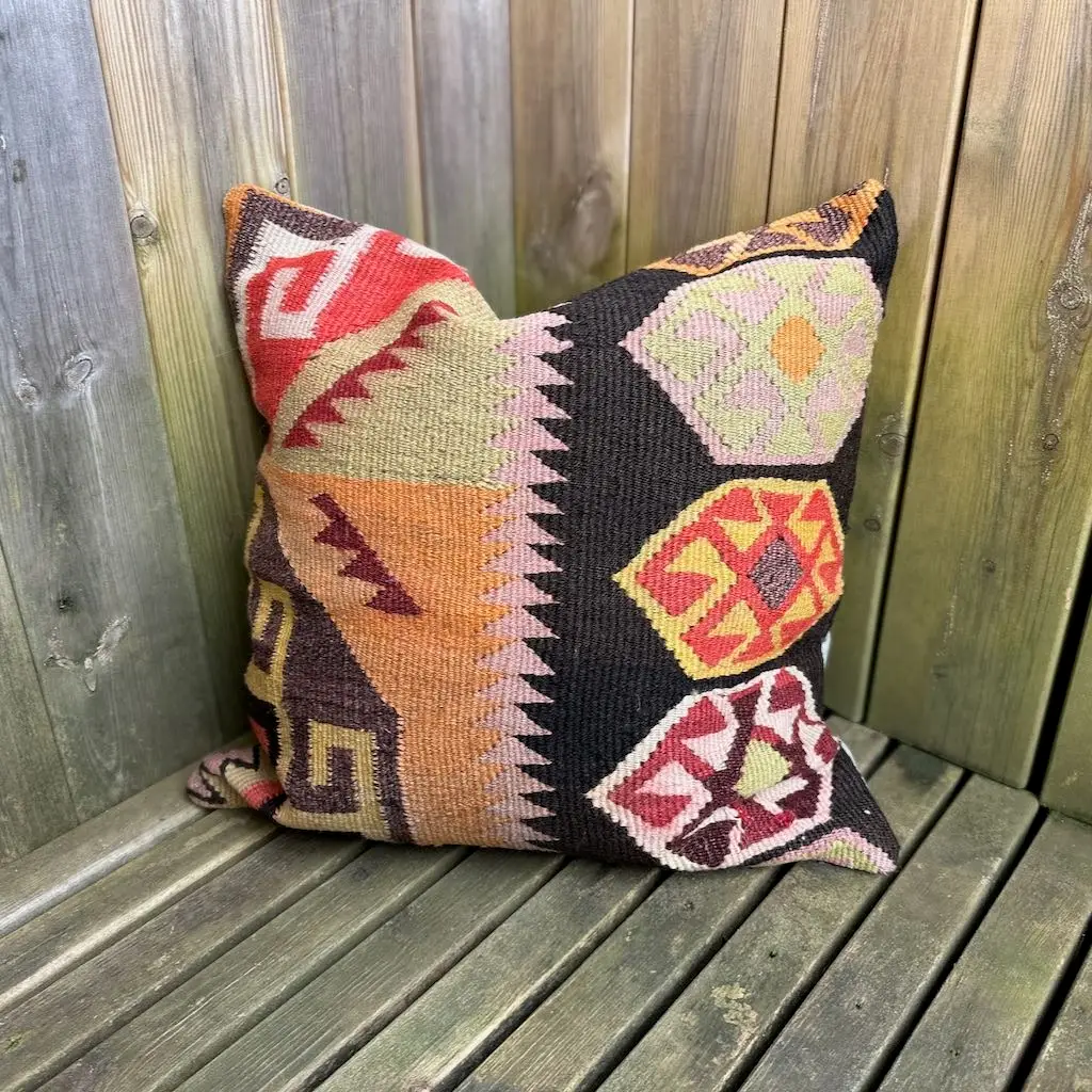 Lekker kelimpute i plantefarget ull. Puten vil være et blikkfang i rommet, enten det er i sofaen, på benken i gangen eller i senga på et soverom. Den vil være spennende i kobinasjon med andre kelimputer, men fungerer også godt som et «statement» alene.