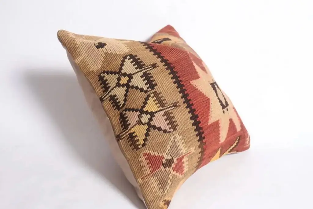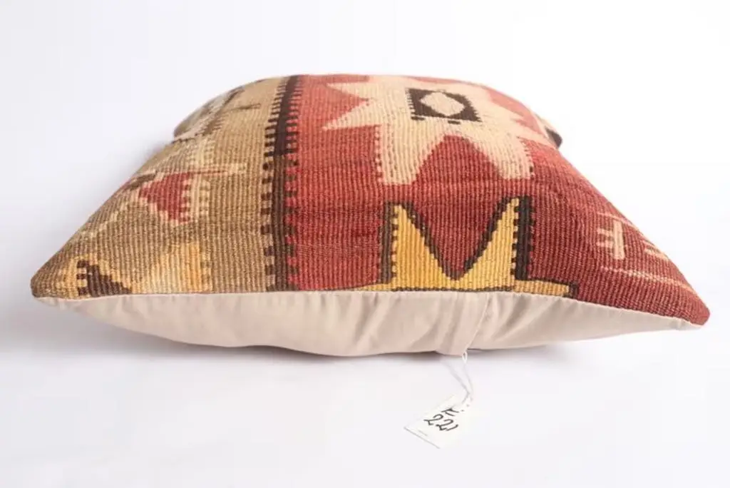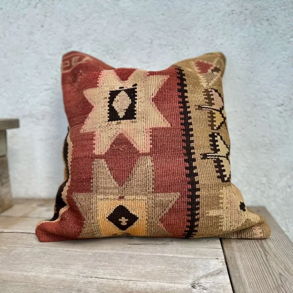Gi hjemmet ditt et personlig og varmt preg med denne håndvevde kelimputen i 100 % ull. Putens kvadratiske fasong gjør den ideell som støttepute i sofaen, på sengen eller i en god lenestol. De vakre fargene gir et mykt og behagelig uttrykk, samtidig som de tilfører subtil farge og liv til interiøret. Hver pute er unik og bærer preg av tradisjonelt håndverk, inspirert av klassiske kelimmønstre fra Midtøsten og Sentral-Asia. Ullmaterialet er naturlig slitesterkt og pustende, og gir både komfort og lang levetid. Kelimputer passer perfekt i både moderne og bohemske hjem, og er et flott valg for deg som ønsker å kombinere estetikk med funksjonalitet. Baksiden kommer med glidelås for enkel fjerning av putetrekket. Enten du ønsker én karakteristisk pute eller vil mikse flere i ulike fargetoner og mønstre, vil denne kelimputen i ull bli et blikkfang i ethvert rom. Kombiner gjerne med tepper og tekstiler i naturmaterialer for et helhetlig og harmonisk interiør.