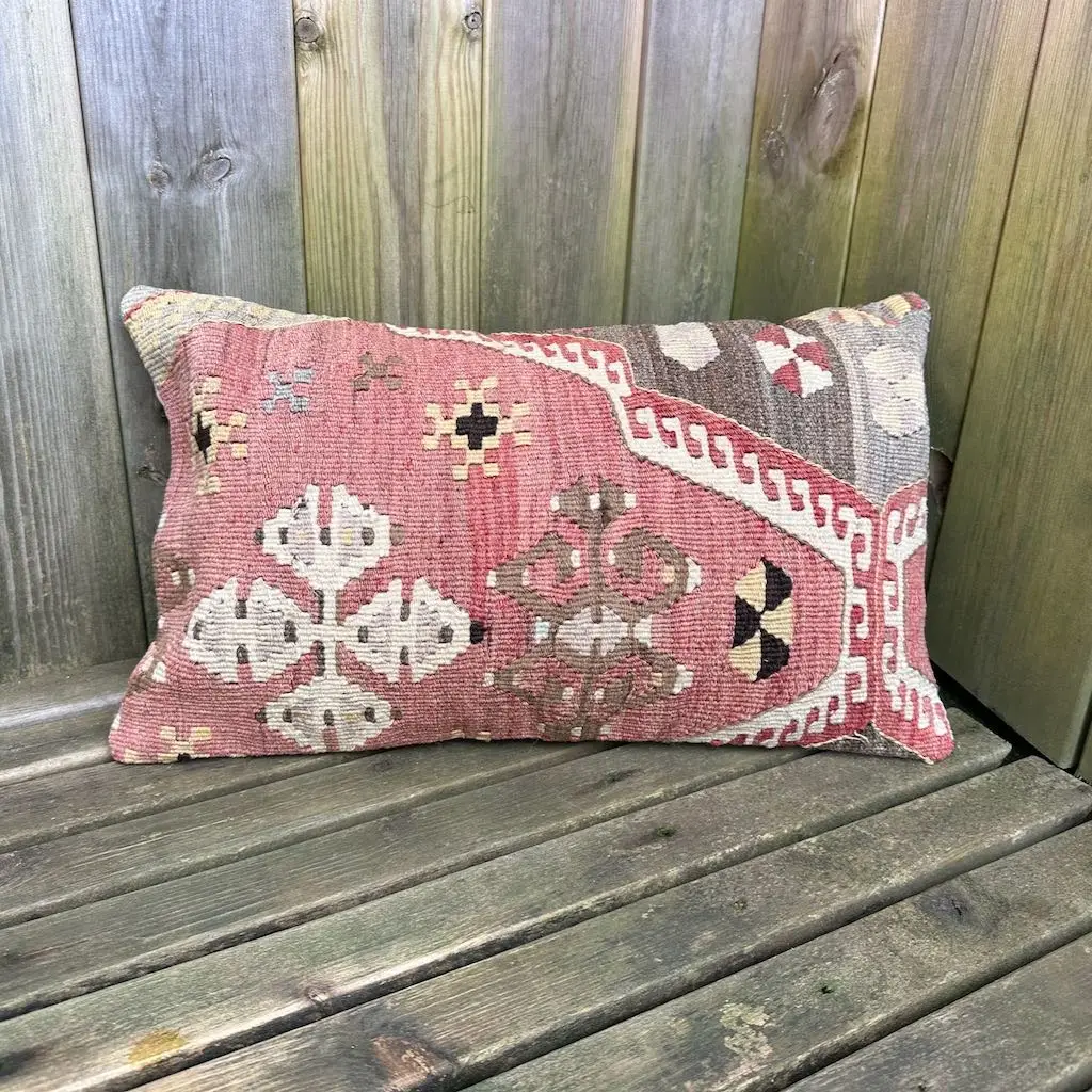 Lekker kelimpute i plantefarget ull. Puten vil være et blikkfang i rommet, enten det er i sofaen, på benken i gangen eller i senga på et soverom. Den vil være spennende i kobinasjon med andre kelimputer, men fungerer også godt som et «statement» alene.