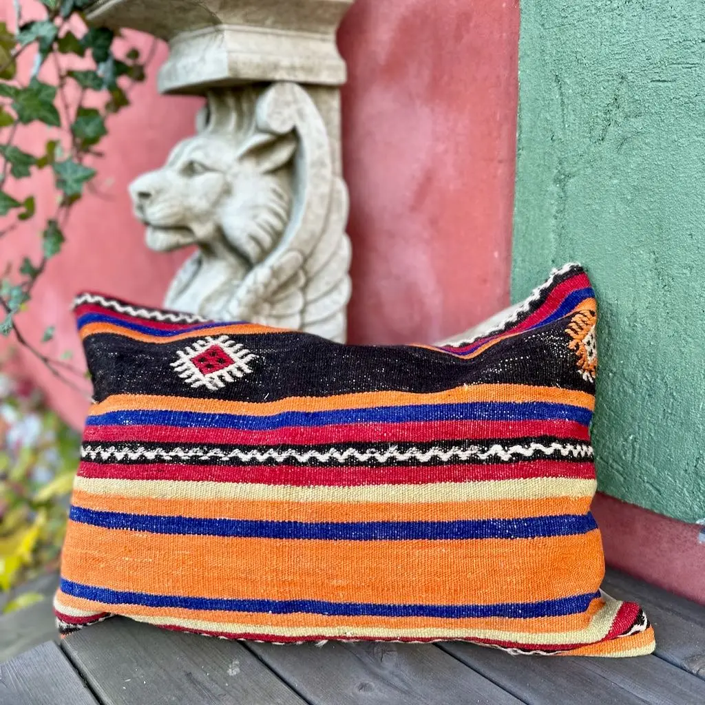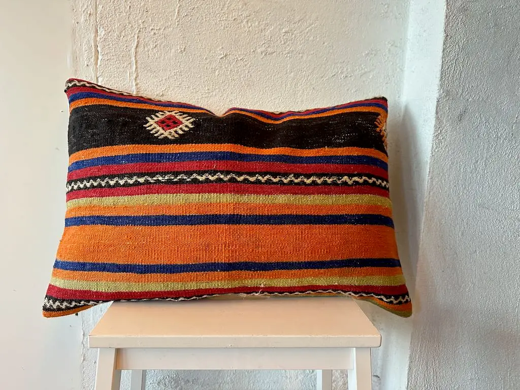 Hver kelinpute er et unikt stykke håndverk – sydd av gamle kelimtepper som bærer med seg tidens patina og sjel. Med geometriske mønstre, falmede naturfarger og rustikke teksturer tilfører de varme, dybde og personlighet til ethvert rom.