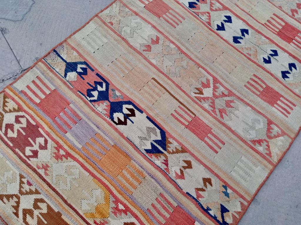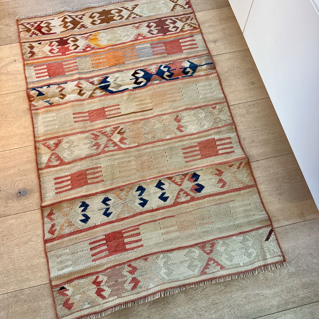 Kelimen er vevd i deilig ull, og alder på tepper er ca 50 år.
