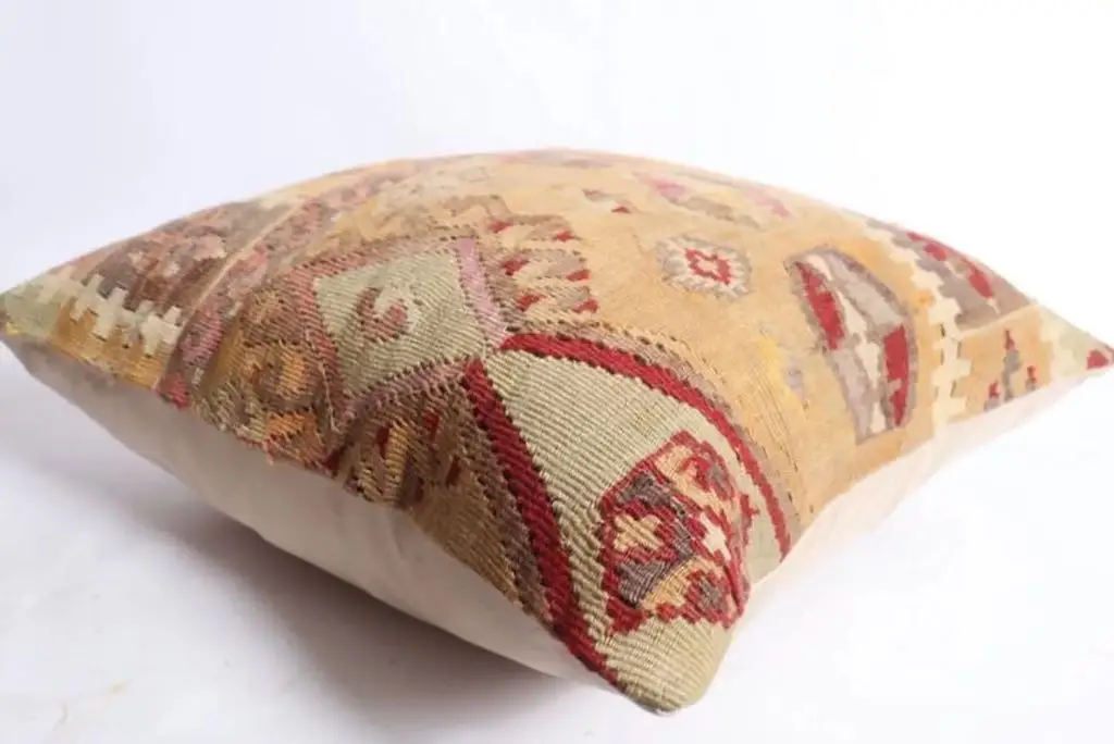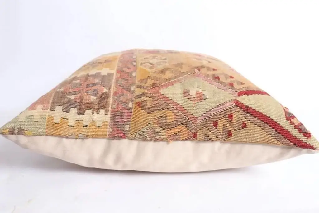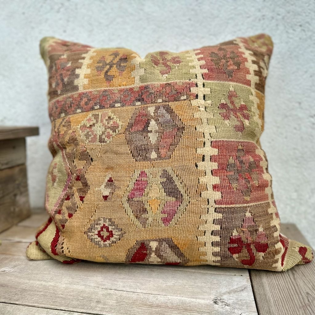Gi hjemmet ditt et personlig og varmt preg med denne håndvevde kelimputen i 100 % ull. Putens kvadratiske fasong gjør den ideell som støttepute i sofaen, på sengen eller i en god lenestol. De vakre fargene gir et mykt og behagelig uttrykk, samtidig som de tilfører subtil farge og liv til interiøret. Hver pute er unik og bærer preg av tradisjonelt håndverk, inspirert av klassiske kelimmønstre fra Midtøsten og Sentral-Asia. Ullmaterialet er naturlig slitesterkt og pustende, og gir både komfort og lang levetid. Kelimputer passer perfekt i både moderne og bohemske hjem, og er et flott valg for deg som ønsker å kombinere estetikk med funksjonalitet. Baksiden kommer med glidelås for enkel fjerning av putetrekket. Enten du ønsker én karakteristisk pute eller vil mikse flere i ulike fargetoner og mønstre, vil denne kelimputen i ull bli et blikkfang i ethvert rom. Kombiner gjerne med tepper og tekstiler i naturmaterialer for et helhetlig og harmonisk interiør.