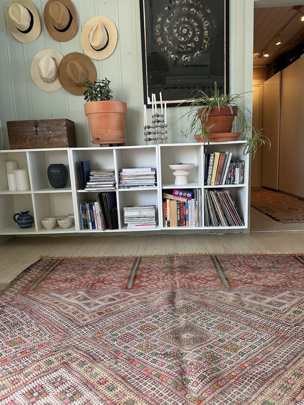Endelig har dette fantastiske Berberteppet kommet til Bohemliv. Teppet er av tykk ull, så det kjennes mykt og dempende. I tillegg isolerer og luner teppet godt på kalde gulv.