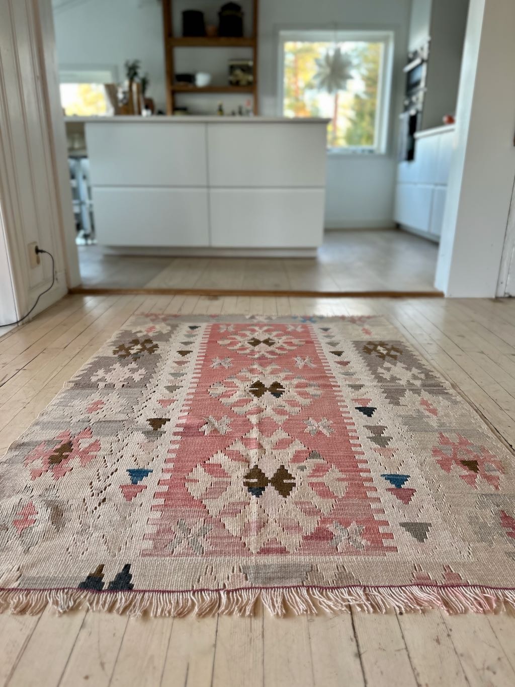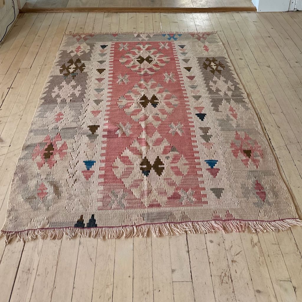 Det er noen ubetydelig bruksspor på kelimen, men teppet er likevel strålende vakkert!