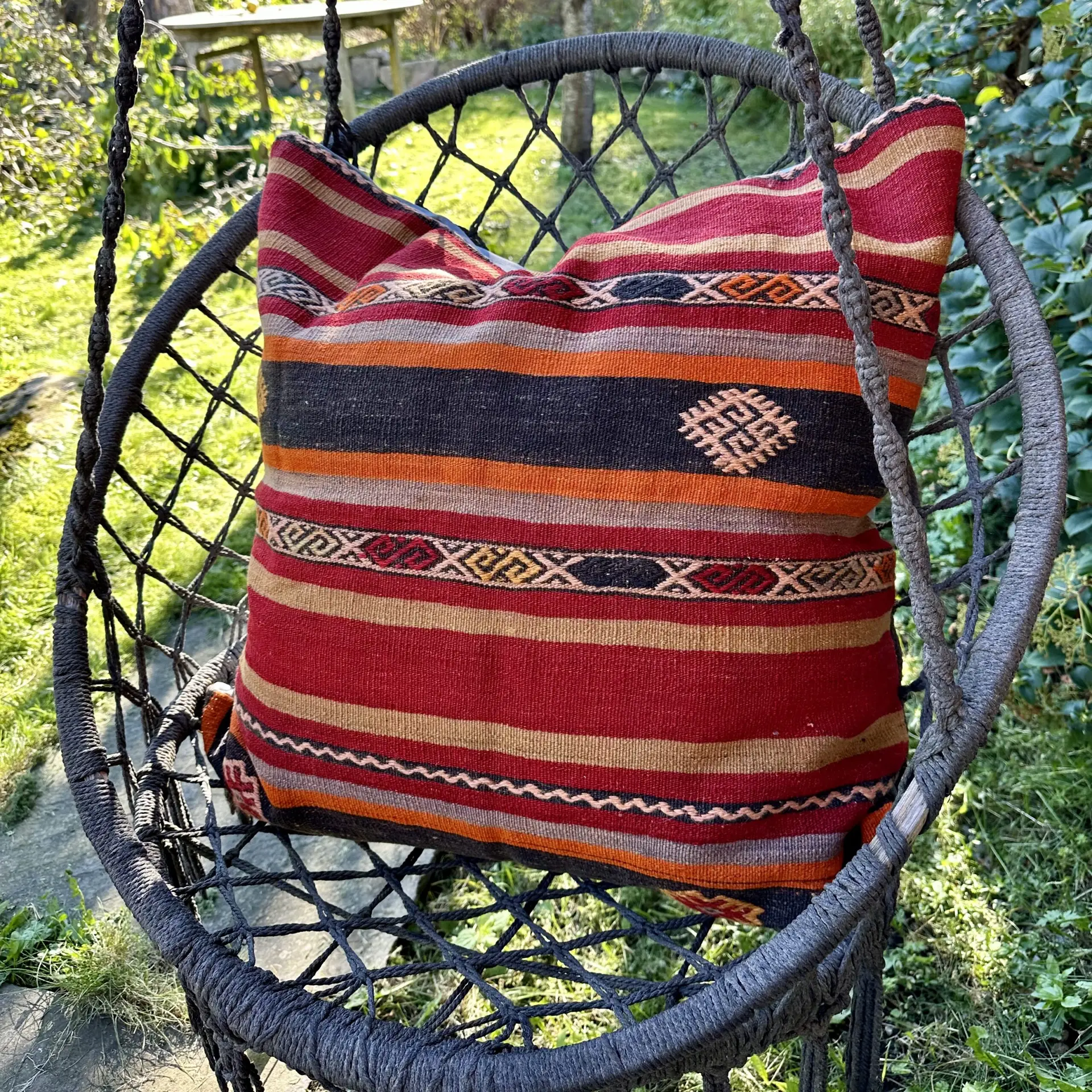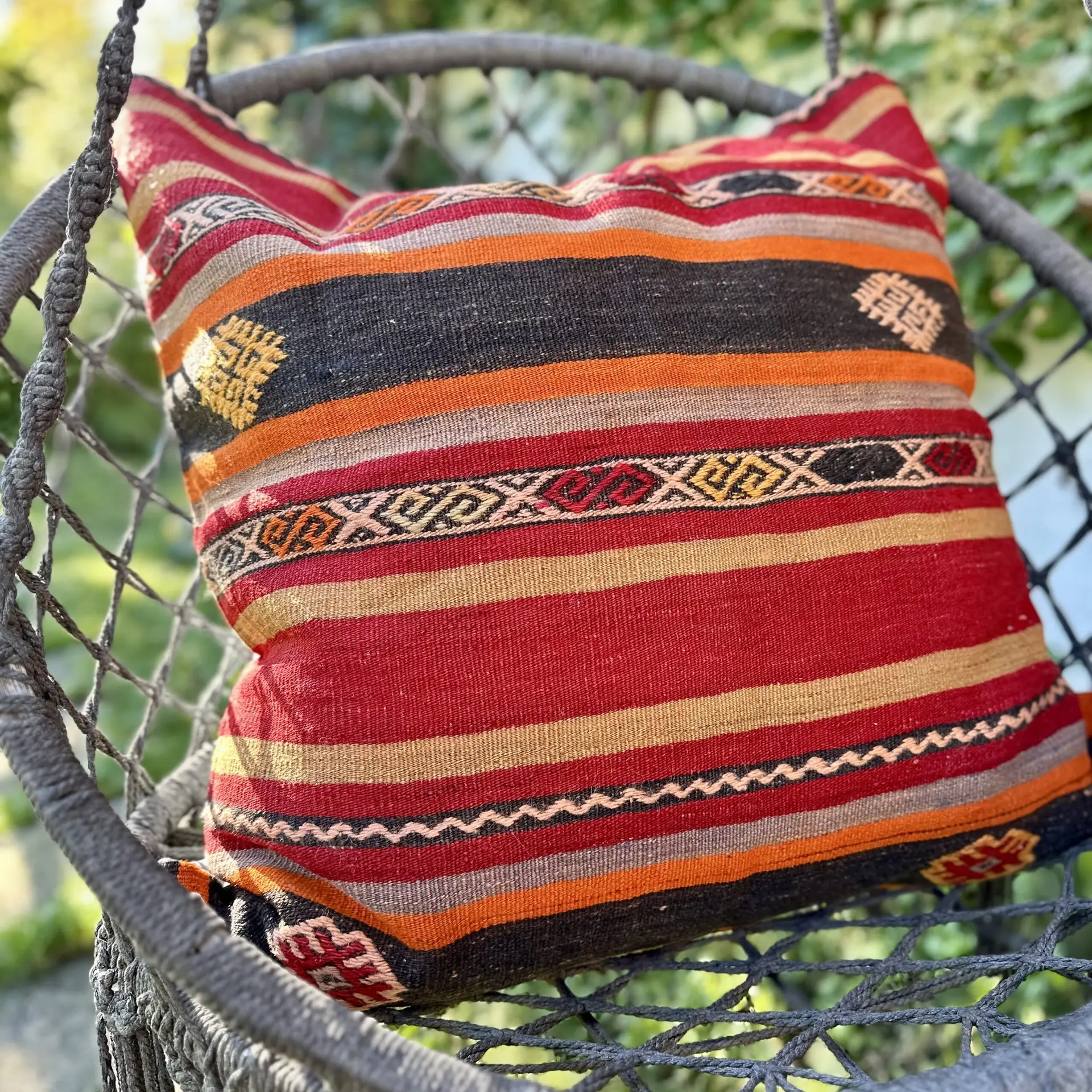 Dette er virkelig en unik skatt. Kelimputen vil ligge som en sjelden diamant på enhver seng eller sofa. Med sin store størrelse vil den være tøff som gulvpute.