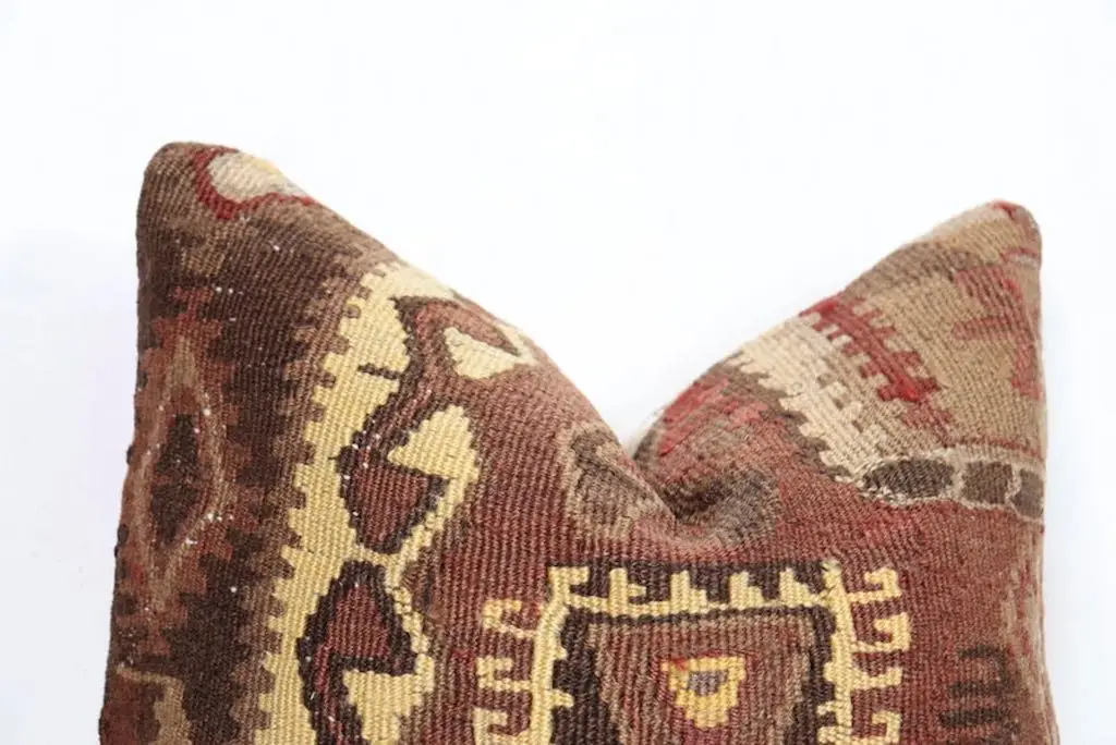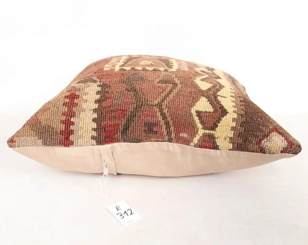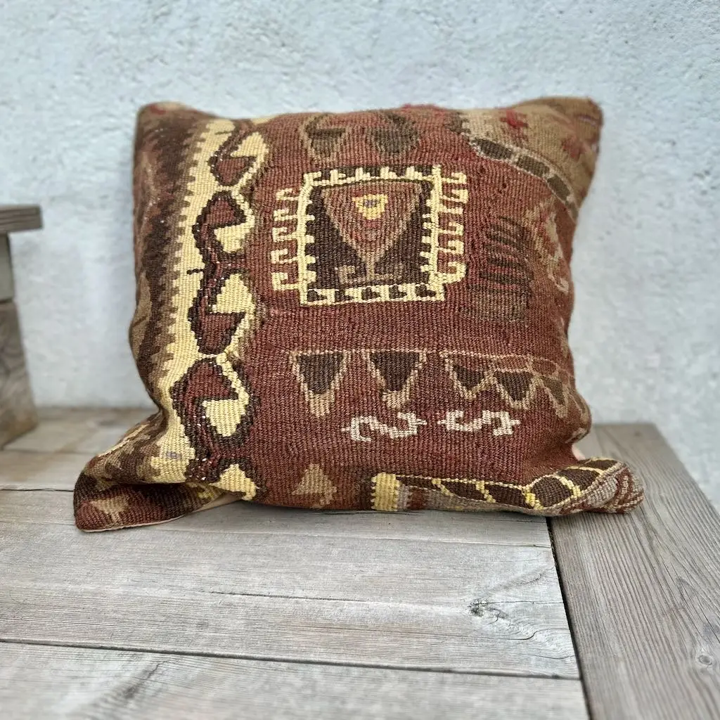 Gi hjemmet ditt et personlig og varmt preg med denne håndvevde puten. De vakre fargene gir et mykt og behagelig uttrykk, samtidig som de tilfører subtil farge og liv til interiøret. Hver av våre puter er unike og bærer preg av tradisjonelt håndverk, inspirert av klassiske kelimmønstre fra Midtøsten og Sentral-Asia. Ullmaterialet er naturlig slitesterkt og pustende, og gir både komfort og lang levetid. Puten passer perfekt i både moderne og bohemske hjem, og er et flott valg for deg som ønsker å kombinere estetikk med funksjonalitet. Enten du ønsker én karakteristisk pute eller vil mikse flere i ulike fargetoner og mønstre, vil denne lekre kelimputen i ull bli et blikkfang i ethvert rom. Kombiner gjerne med tepper og tekstiler i naturmaterialer for et helhetlig og harmonisk interiør.