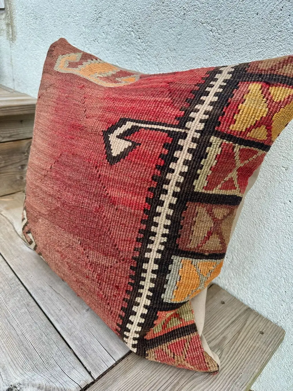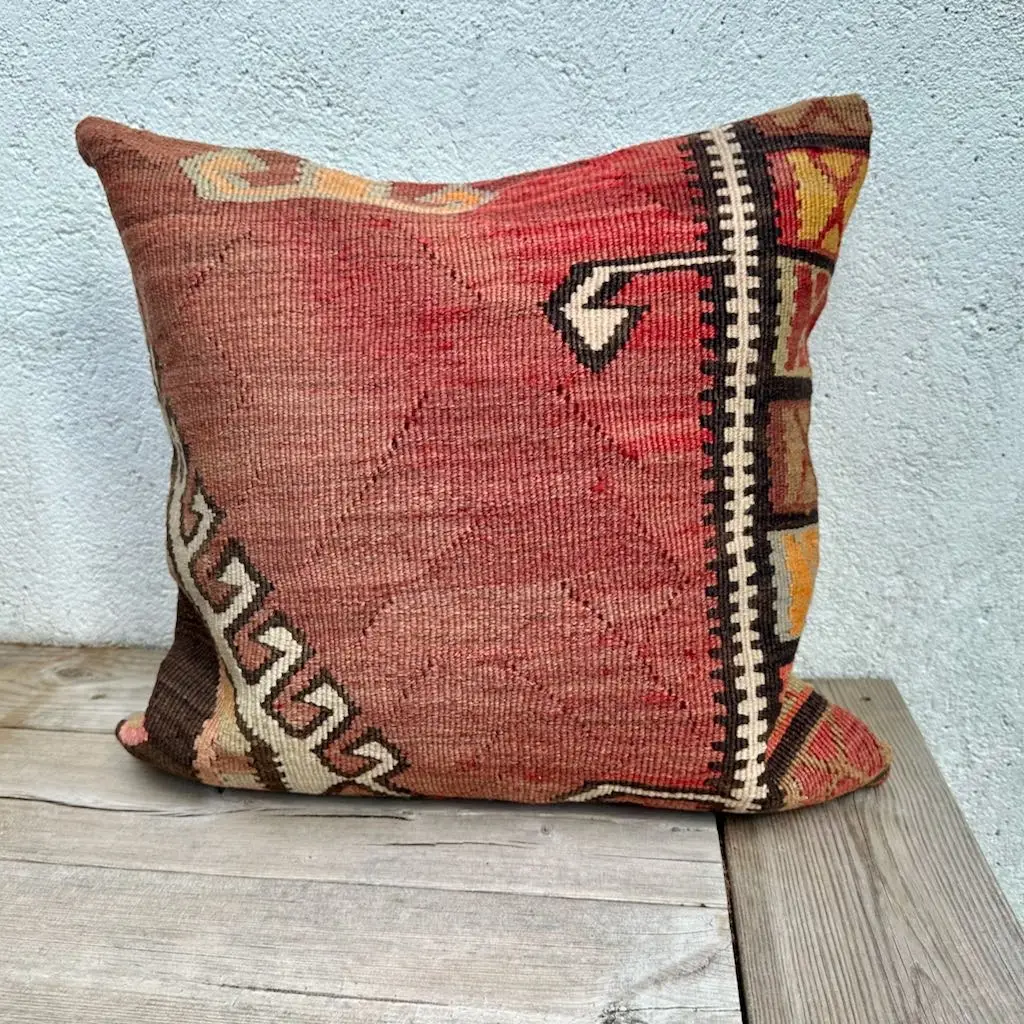 Kelimputene du finner hos oss er unike puter lagd av vintage kelimtepper med opprinnelse fra Anatolia, Tyrkia. Putene er lagd av plantefarget ull og med sitt karismatiske uttrykk vil den være et blikkfang i rommet, enten det er i sofaen, på benken i gangen eller i senga på et soverom. Puten vil fungere godt som et «statement» alene i interiøret, men det er også spennende å kombinere flere av våre puter.