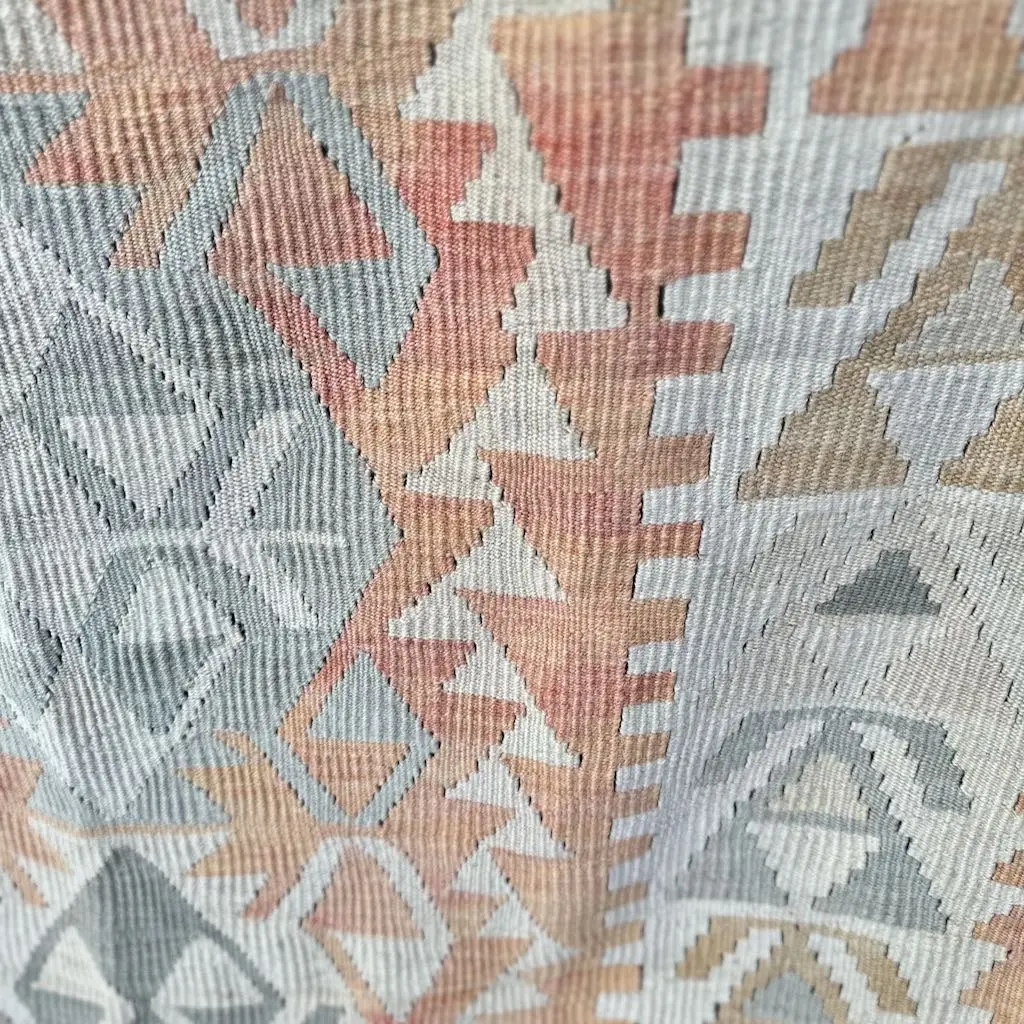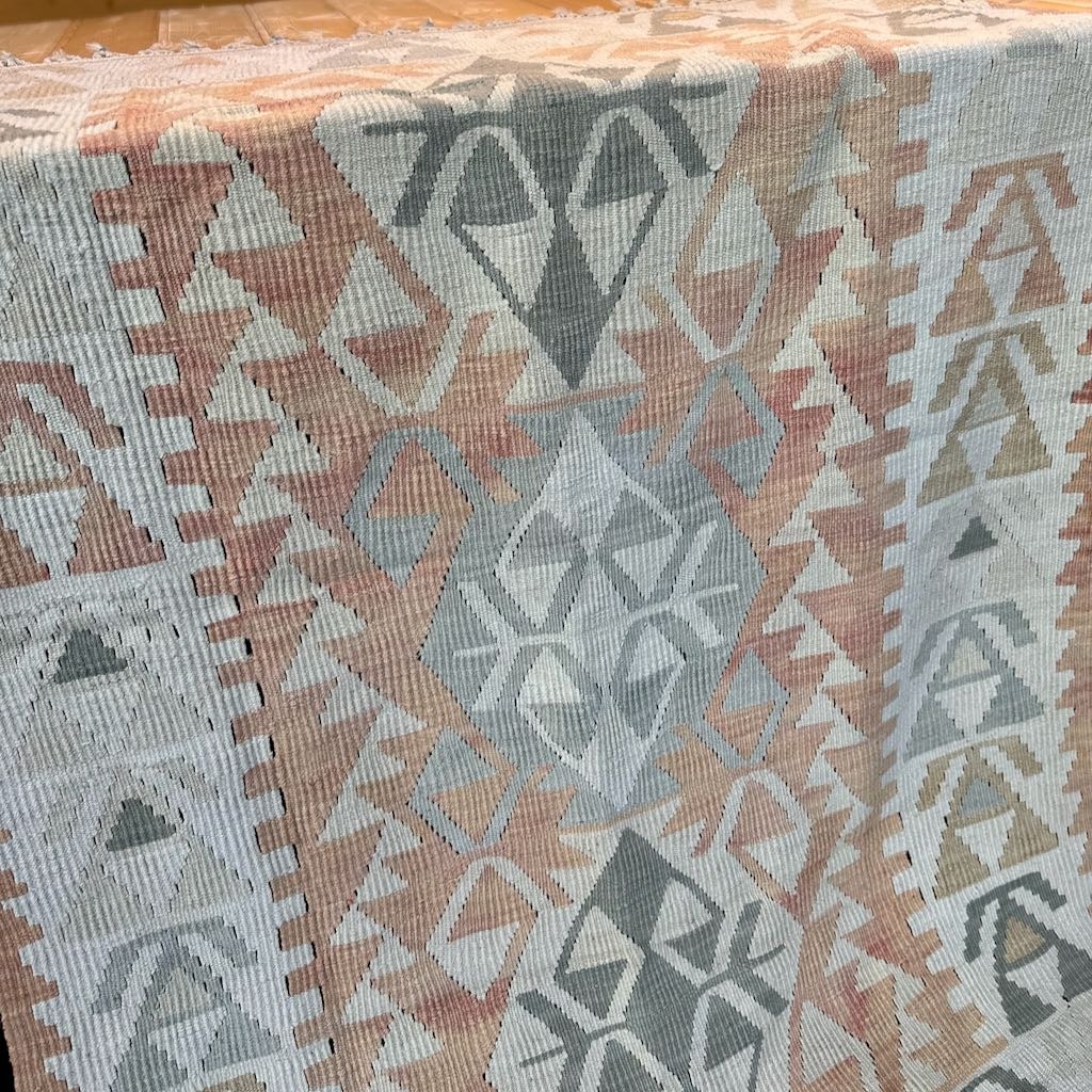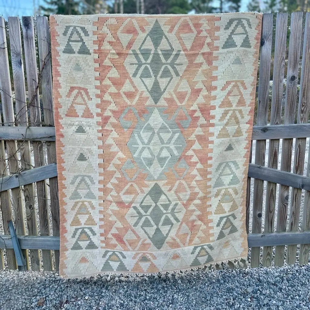 Dette kelimteppet er håndvevd rundt 1960. Det utstråler klassisk eleganse og harmoni.